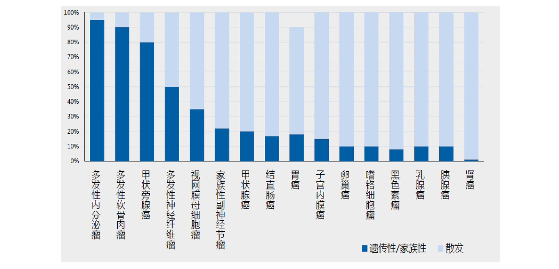 肿瘤的发生是遗传因素与环境因素相互作用的结果。肿瘤中约80%属于散发性肿瘤,还有5%-10%的病例由基因突变引起,属于遗传性肿瘤。在遗传性肿瘤发病的过程中,遗传因素占了相当大的比重,单纯控制环境因素难以达到良好的防治效果,早发现、早干预是防控遗传性肿瘤最有效的方法。