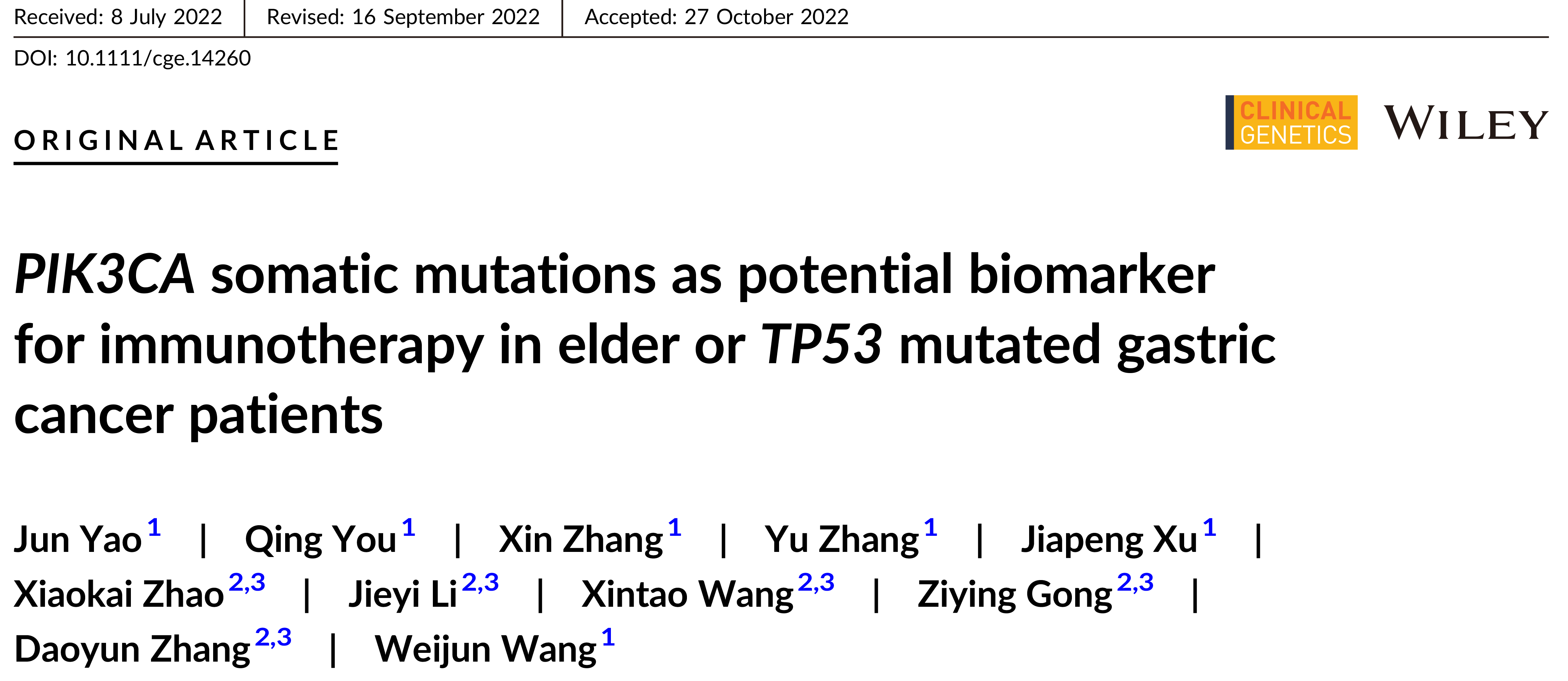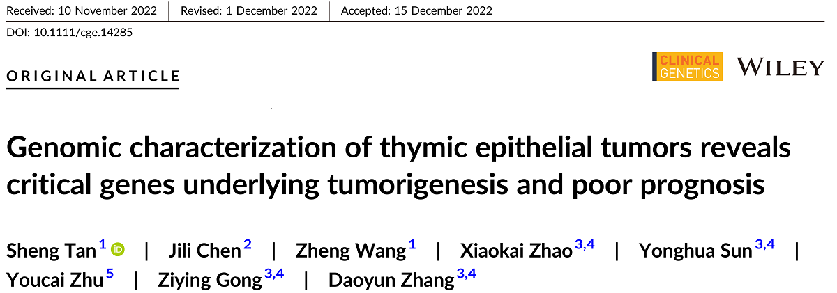 2022年12月15日,PA集团|中国官网 旗下精准医学与伴随诊断重点实验室、浙江省允英分子医学诊断企业研究院携手徐州医科大学附属医院,借助于允英自主研发的AllNGS™技术平台,在Clinical Genetics期刊发布学术论文:Genomic characterization of thymic epithelial tumors reveals critical genes underlying tumorigenesis and poor prognosis。本论文通讯作者为徐州医科大学附属医院胸外科谭胜主任、PA集团|中国官网 CEO张道允博士及PA集团|中国官网 研发总监巩子英博士(DOI: 10.1111/cge.14285)。